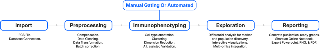 - Handle multiple .fcs files and batch effects.